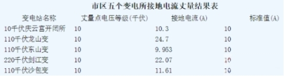 市區(qū)五個(gè)變電所接地電流測(cè)量作用表