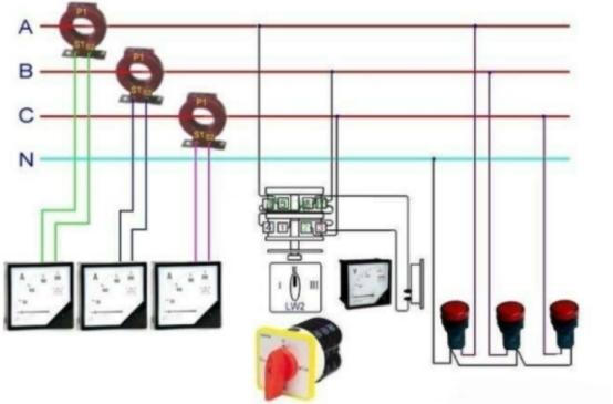 電流互感器是一種特別的變壓器,它的作用是把大電流變成標(biāo)準(zhǔn)小電流,配合檢測(cè)外表、計(jì)量外表和繼電器等設(shè)備作業(yè)。這樣可以起到擴(kuò)展外表檢測(cè)規(guī)劃,行進(jìn)電路的穩(wěn)定性和安全性的作用。電流互感器的電流接線(xiàn)原理圖如下圖所示,電流互感器的一次線(xiàn)圈串聯(lián)在一次主電路中,其二次接入的外表和繼電器的線(xiàn)圈也全部是串聯(lián)的。