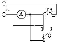 電流互感器接線如圖3所示。圖中Q為單級(jí)雙投開(kāi)關(guān)。當(dāng)開(kāi)關(guān)投向"1"時(shí),電流表的讀數(shù)較小,投至"2"時(shí)讀數(shù)較大,則證明是減極性,杏則為加極性。