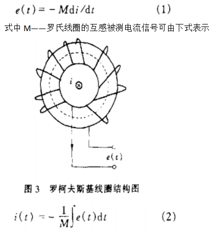 在有源電子式電流互感器中.作為一次電流采樣傳感頭的元件有很多種、有傳統的電磁式電流互感器、特別設計的小信號電流互感器、分流電阻器、羅柯夫斯基線圈等。其間羅柯夫斯基線圈以其超卓的頻率響應、高的檢測準確度和結構簡略、本錢賤價等特性而成為首選。所以依據羅柯夫斯基線圈的有源ETA也就成為最具發展潛力的光電互感器產品,它既可以用作關閉電器GIS、插接式組合電器PASS中的電流檢測設備,又可用于敞開式獨立有源ETA。羅柯夫斯基線圈是將導線均勻地繞在一個非磁性資料的骨架上制造而成的空心線圈,如圖3所示。載流導線從線圈中心穿過,當導線上有電流經過期,在線圈的兩頭將會發生一個感應電勢e,其巨細為