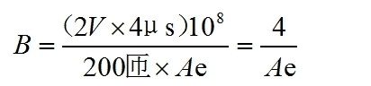現在咱們來看磁芯,假定二管是一般的一般的二管,通態電壓大約為1V,電流為10A/200=50mA?;ジ衅鬏敵鲭妷簽?/span>1V,加上二管的通態電壓1V,總電壓大約2V。250kHz頻率作業時,磁芯上的磁感應強度不會跨過